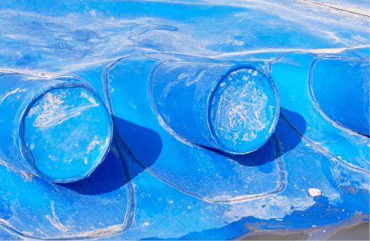 Геомембрана TRIS состоит из трех слоев LLDPE, где средний слой контрастирует с верхним и нижним, облегчая визуальное обнаружение повреждений. Это позволяет быстро выявлять дефекты без специальных инструментов, ускоряя монтаж и улучшая гидроизоляцию. Такая структура важна для своевременного обнаружения проблем, обеспечивая надежную защиту объектов, таких как полигоны и водохранилища, и снижая время и затраты на ремонт.
